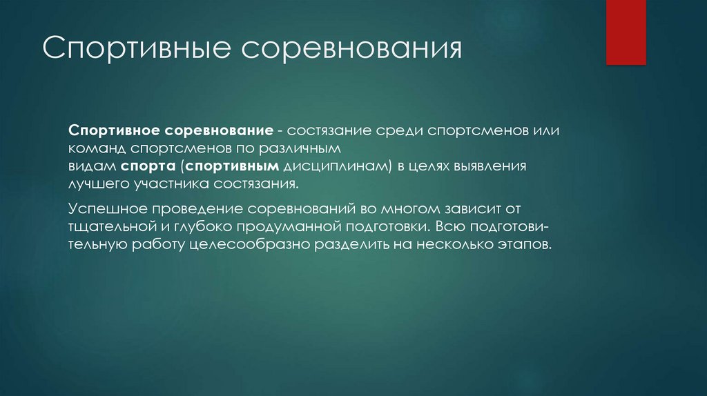 Спортивные соревнованияСпортивное соревнование - состязание среди спортсменов или