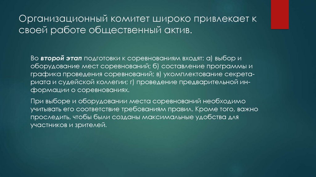 Успешное проведение соревнований во многом зависит от
