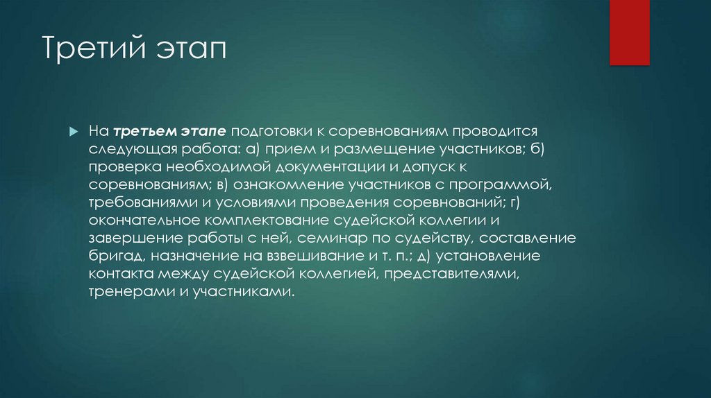 Третий этапНа третьем этапе подготовки к соревнованиям проводится