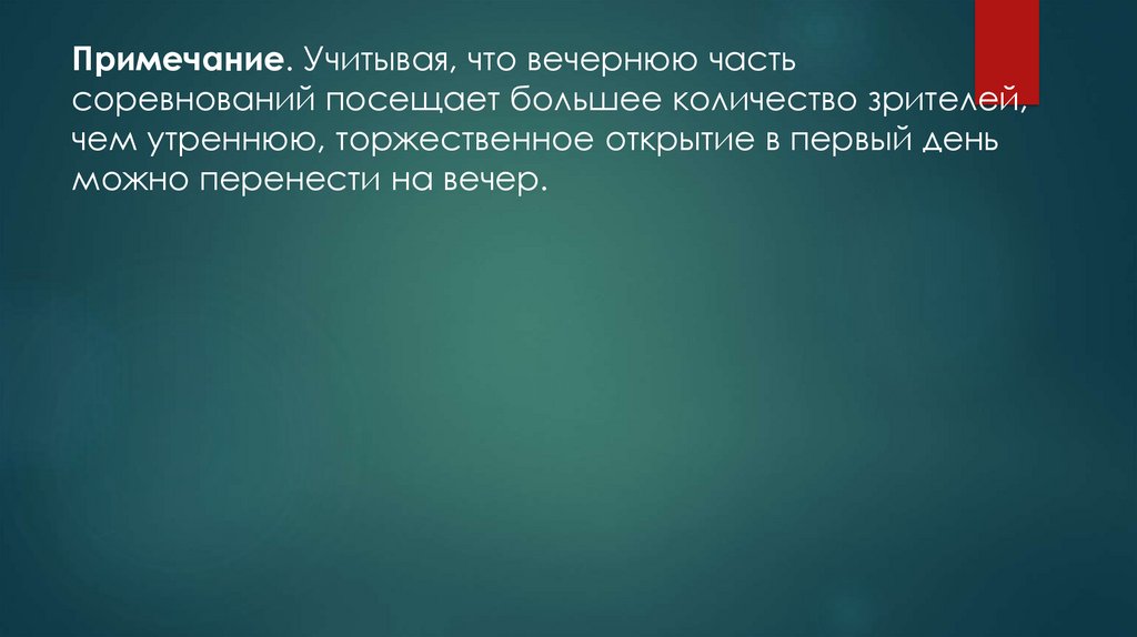 Примечание. Учитывая, что вечернюю частьсоревнований посещает большее количество зрителей,
