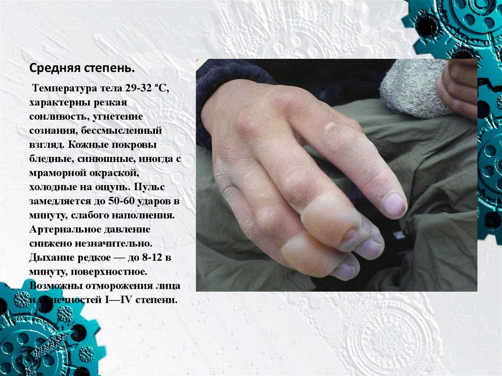 Средняя степень.Температура тела 29-32 °C,