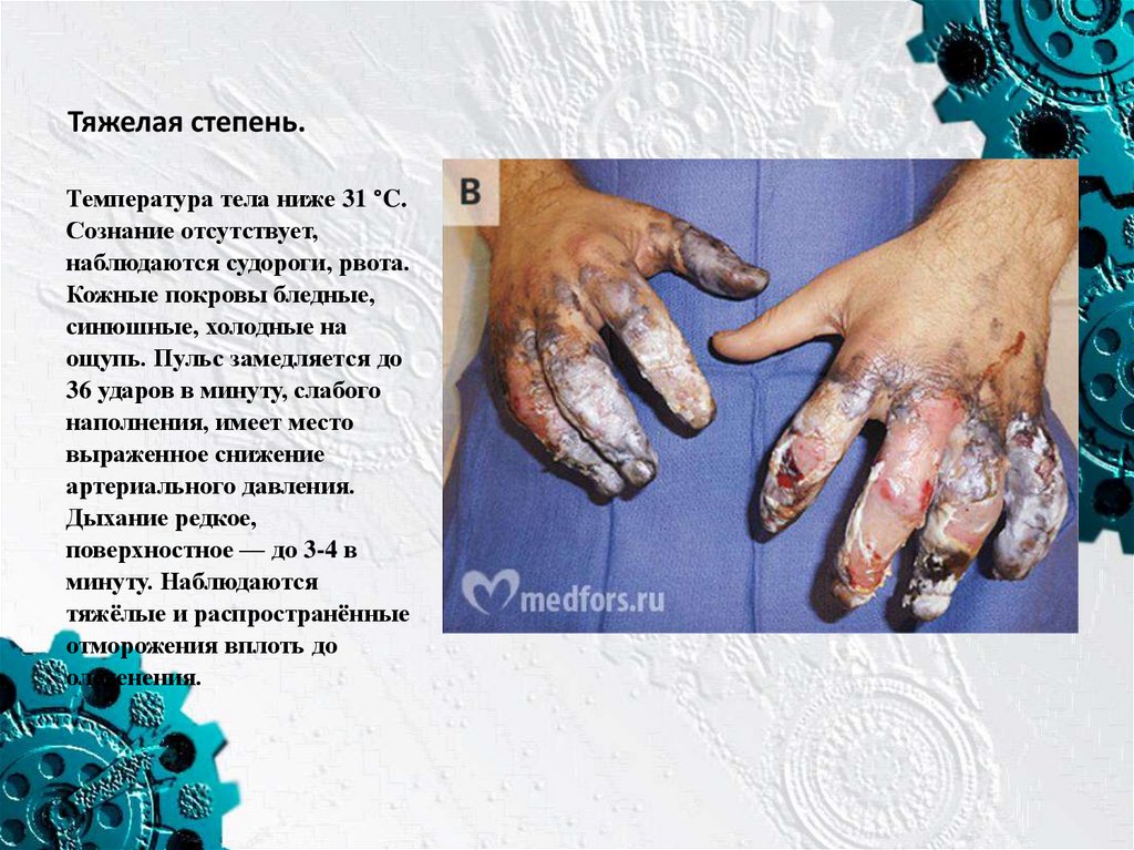 Тяжелая степень.Температура тела ниже 31 °C.