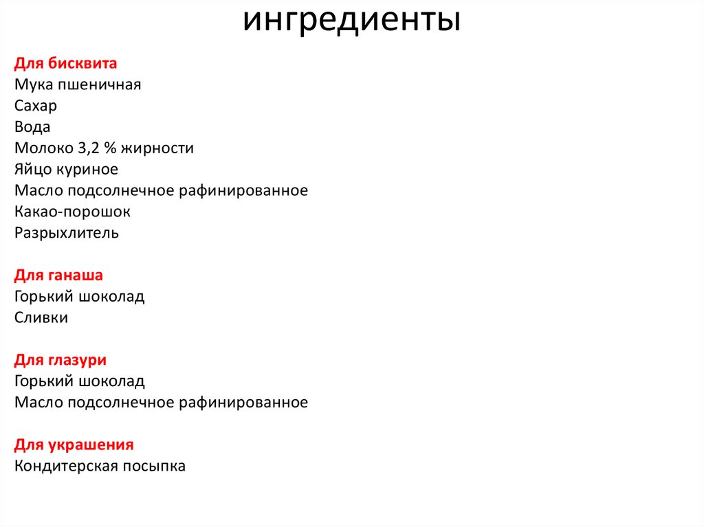 ингредиентыДля бисквита