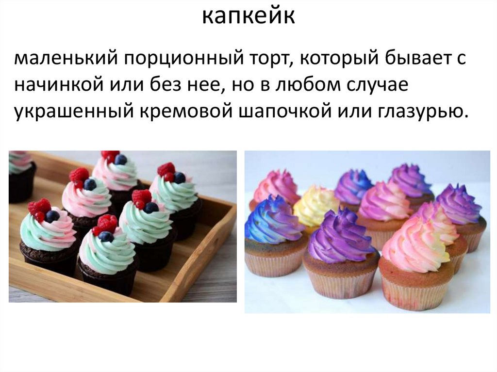капкейкмаленький порционный торт, который бывает с