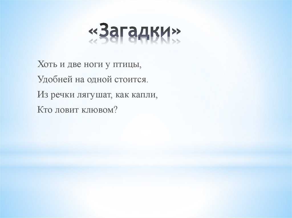 Хоть и две ноги у птицы,Удобней на одной стоится.