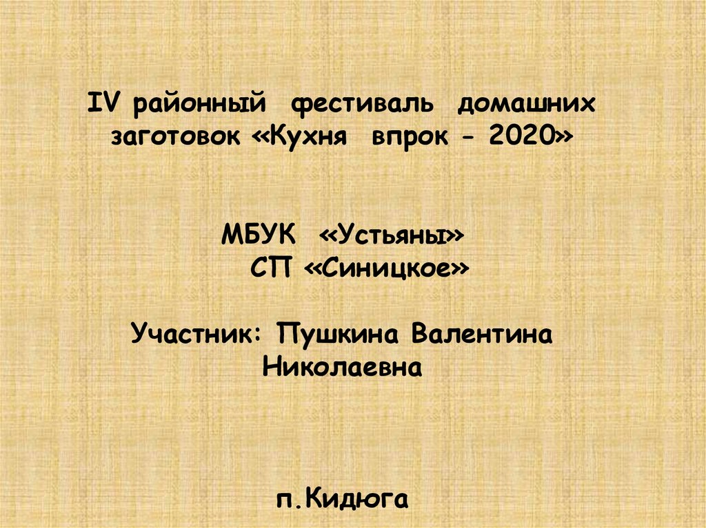 IV районный фестиваль домашнихзаготовок «Кухня впрок - 2020»