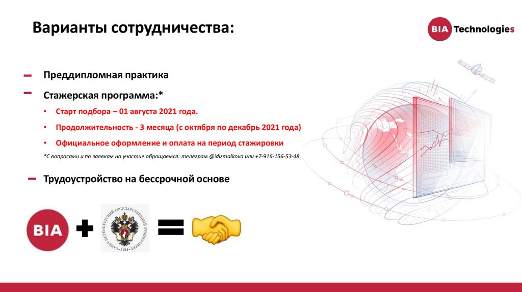 Варианты сотрудничества:Преддипломная практика