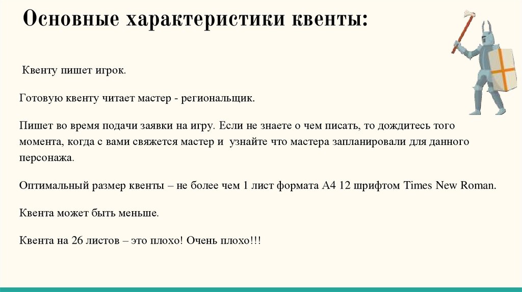 Основные характеристики квенты:Квенту пишет игрок.