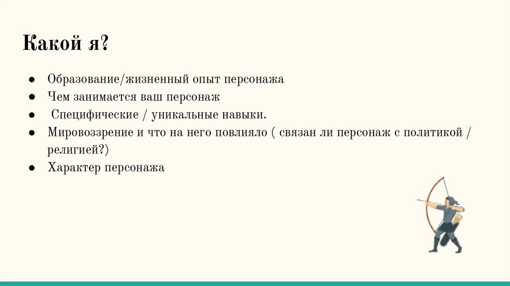Какой я?● Образование/жизненный опыт персонажа