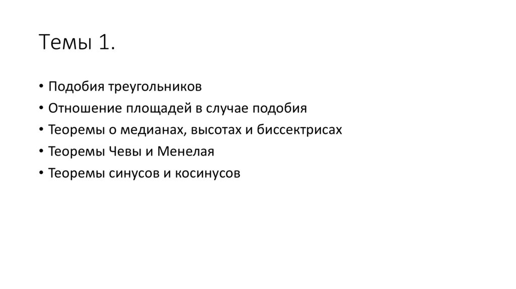 Темы 1.• Подобия треугольников