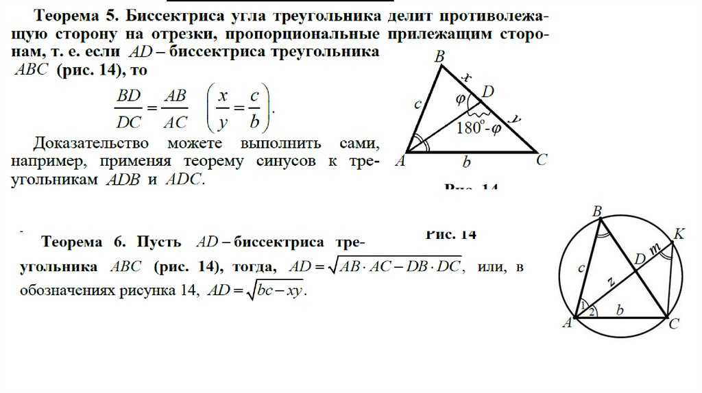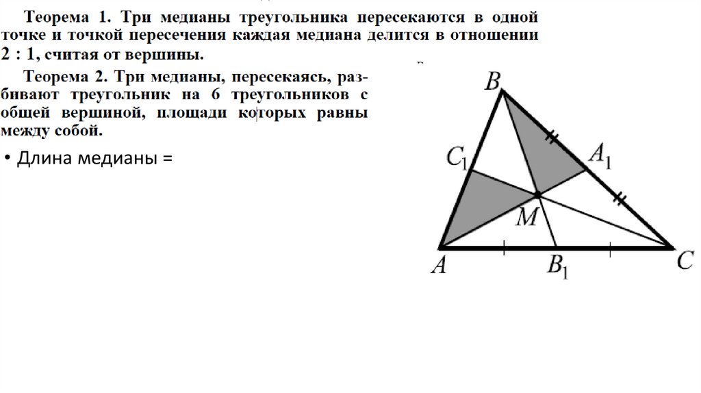 • Теоремы о медианах, высотах и биссектрисах