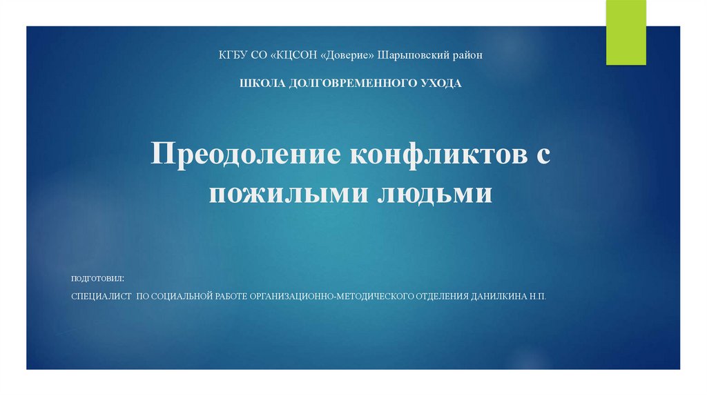 КГБУ СО «КЦСОН «Доверие» Шарыповский районШКОЛА ДОЛГОВРЕМЕННОГО УХОДА