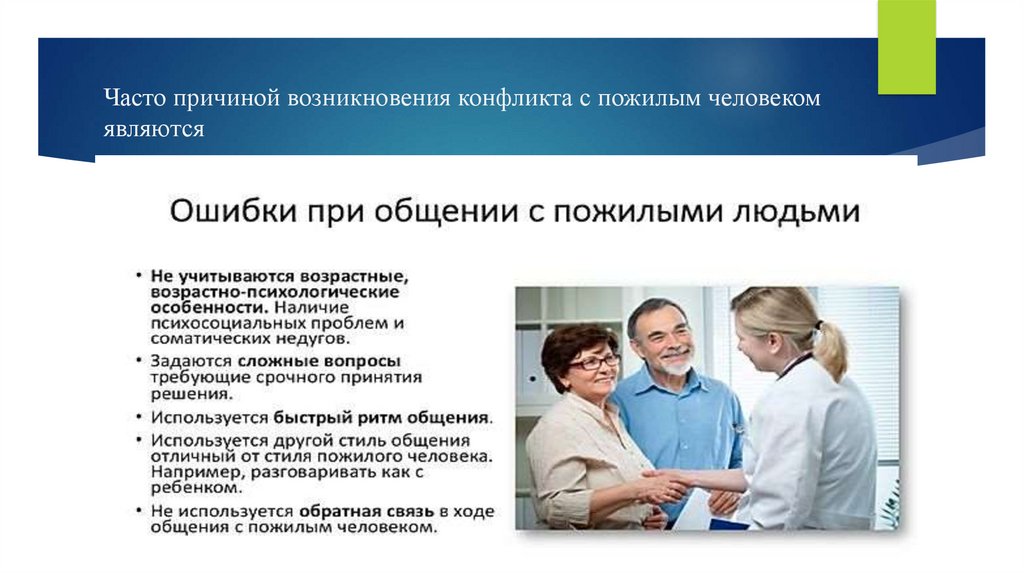 Часто причиной возникновения конфликта с пожилым человекомявляются