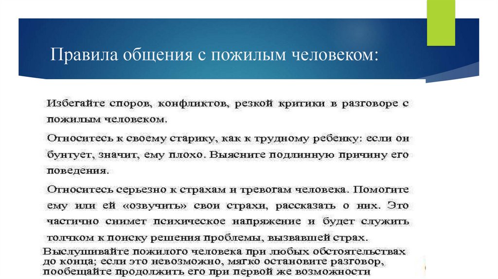 Работая с пожилыми людьми, всегда необходимо понимать, что3.
