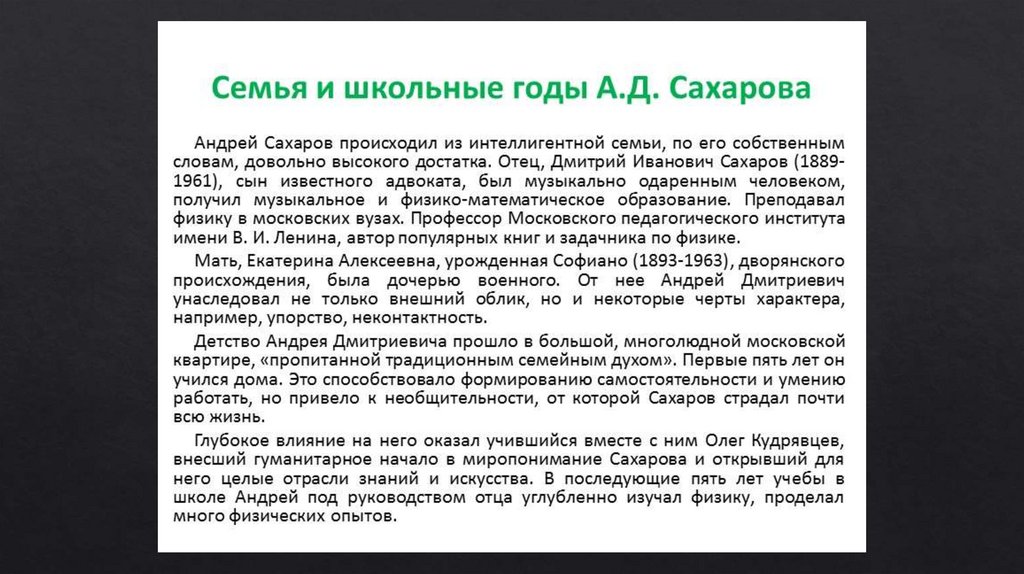Гуманист, учёный, гражданин Андрей Дмитриевич Сахаров (1921 – 1989)