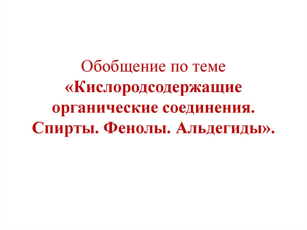 Кислородсодержащие органические соединения. Спирты. Фенолы. Альдегиды