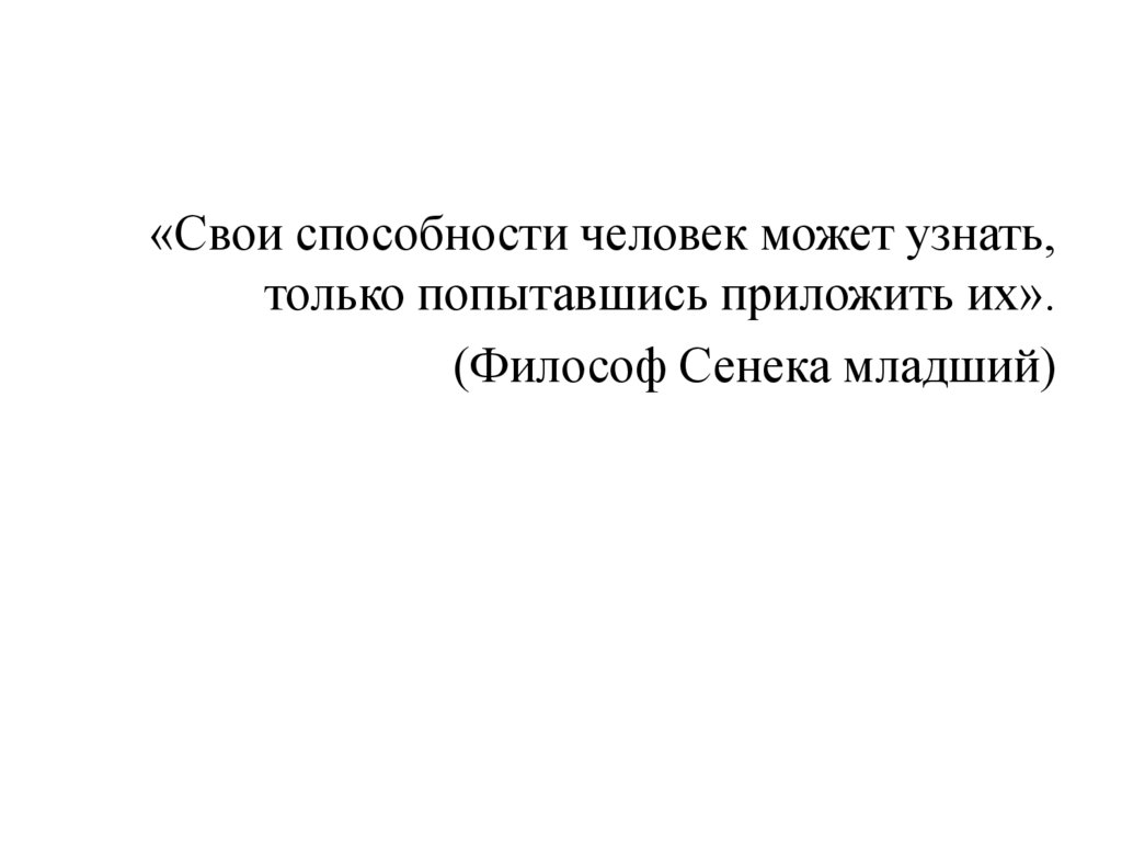 «Свои способности человек может узнать,только попытавшись приложить их».