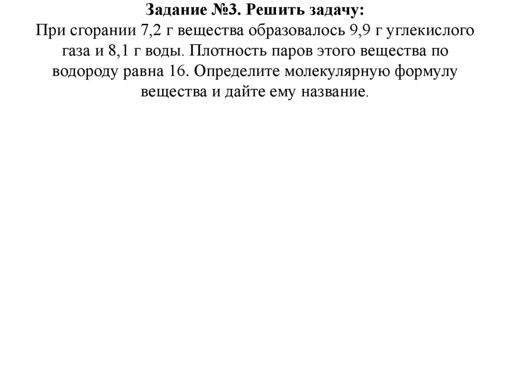 Задание №3. Решить задачу:При сгорании 7,2 г вещества образовалось 9,9 г углекислого