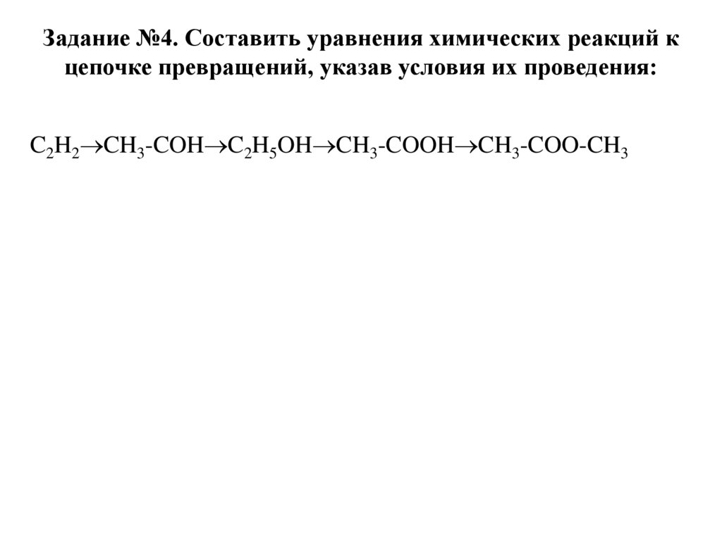 Задание №4. Составить уравнения химических реакций кцепочке превращений, указав условия их проведения: