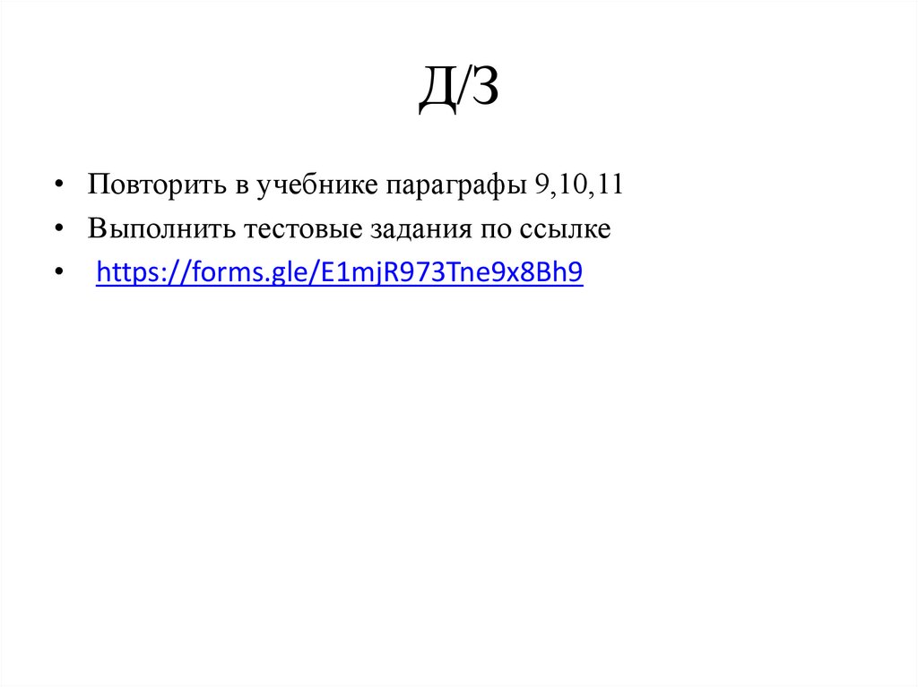 Д/З• Повторить в учебнике параграфы 9,10,11