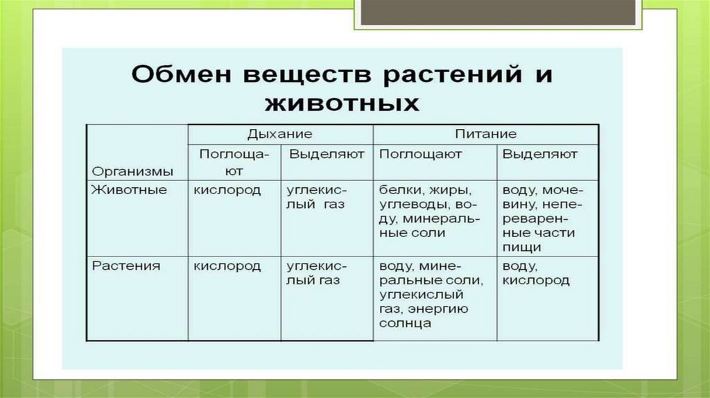 Обмен веществ и энергии. Питательные вещества. Пищевые продукты