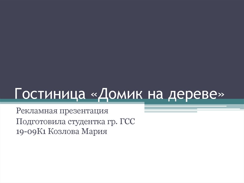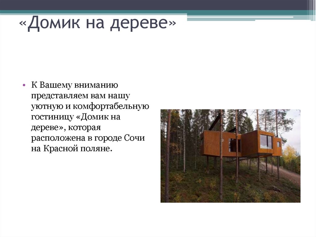 Гостиница «Домик на дереве»Рекламная презентация
