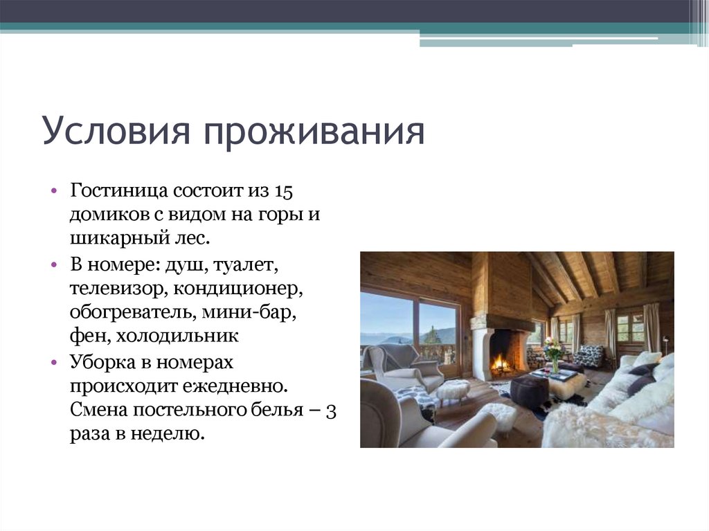 Условия проживания• Гостиница состоит из 15
