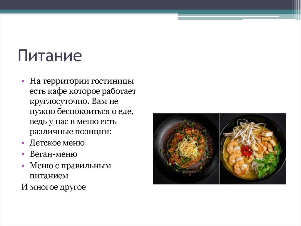 Питание• На территории гостиницы