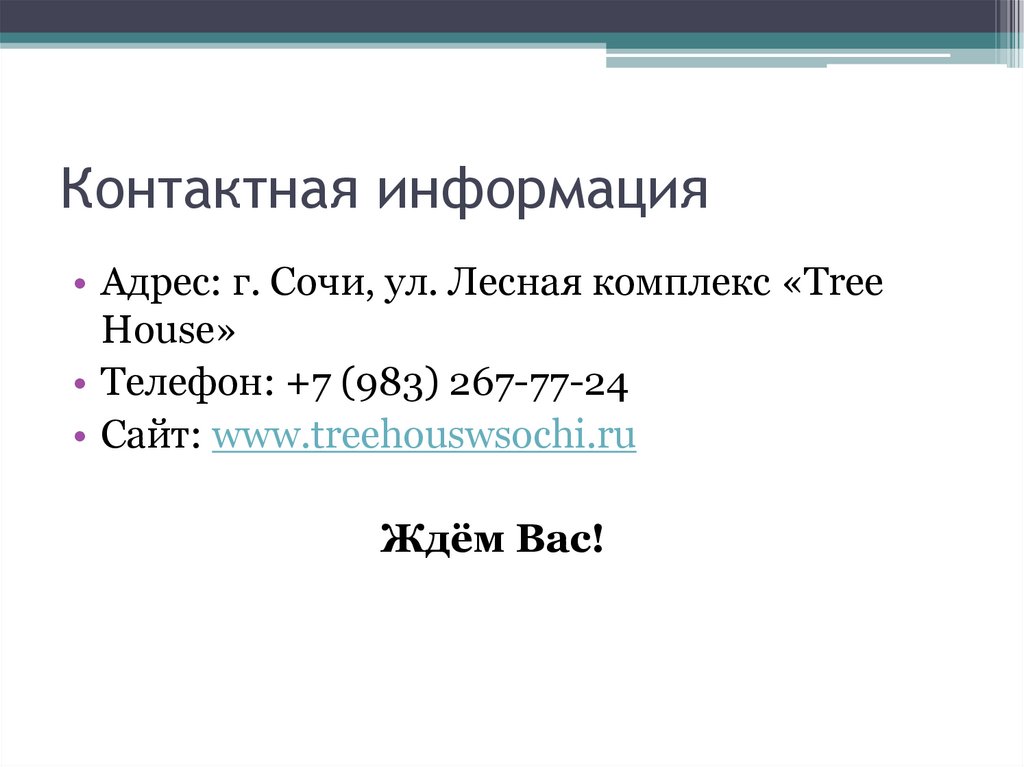 Контактная информация• Адрес: г. Сочи, ул. Лесная комплекс «Tree