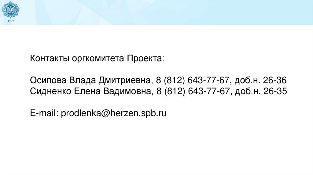 Осипова Влада Дмитриевна, 8 (812) 643-77-67, доб.н. 26-36