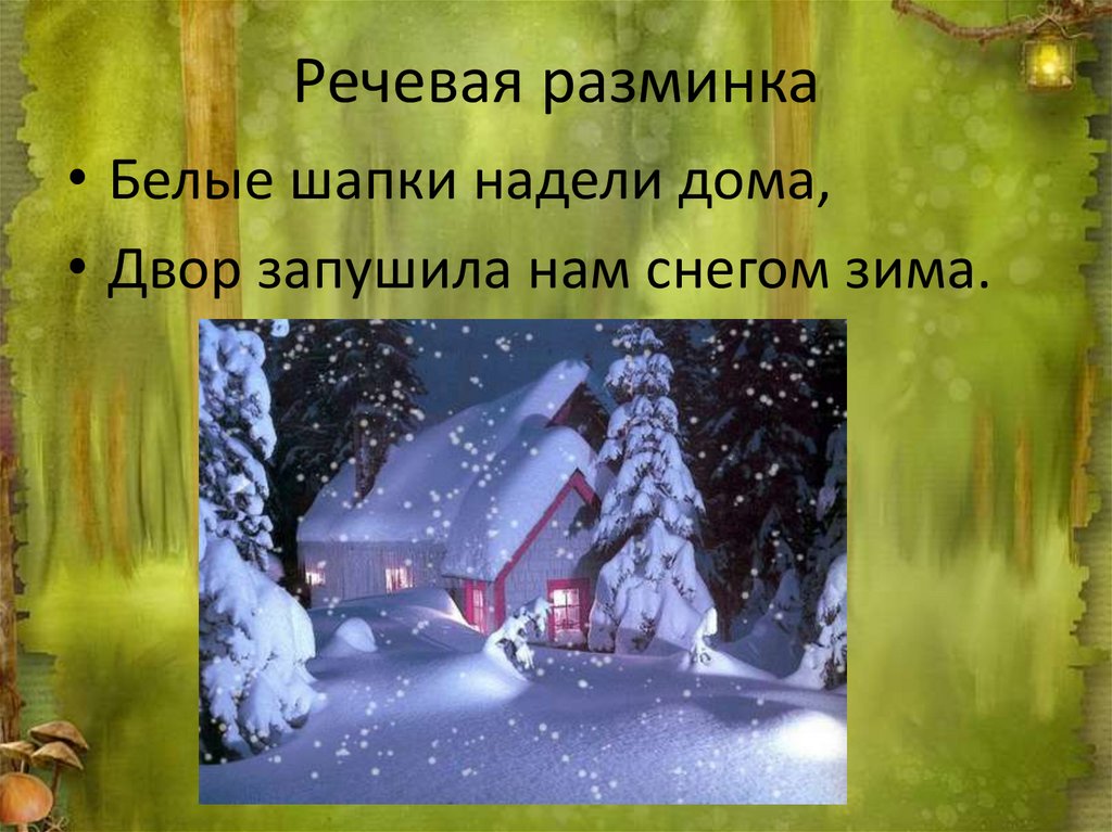 Речевая разминка• Белые шапки надели дома,