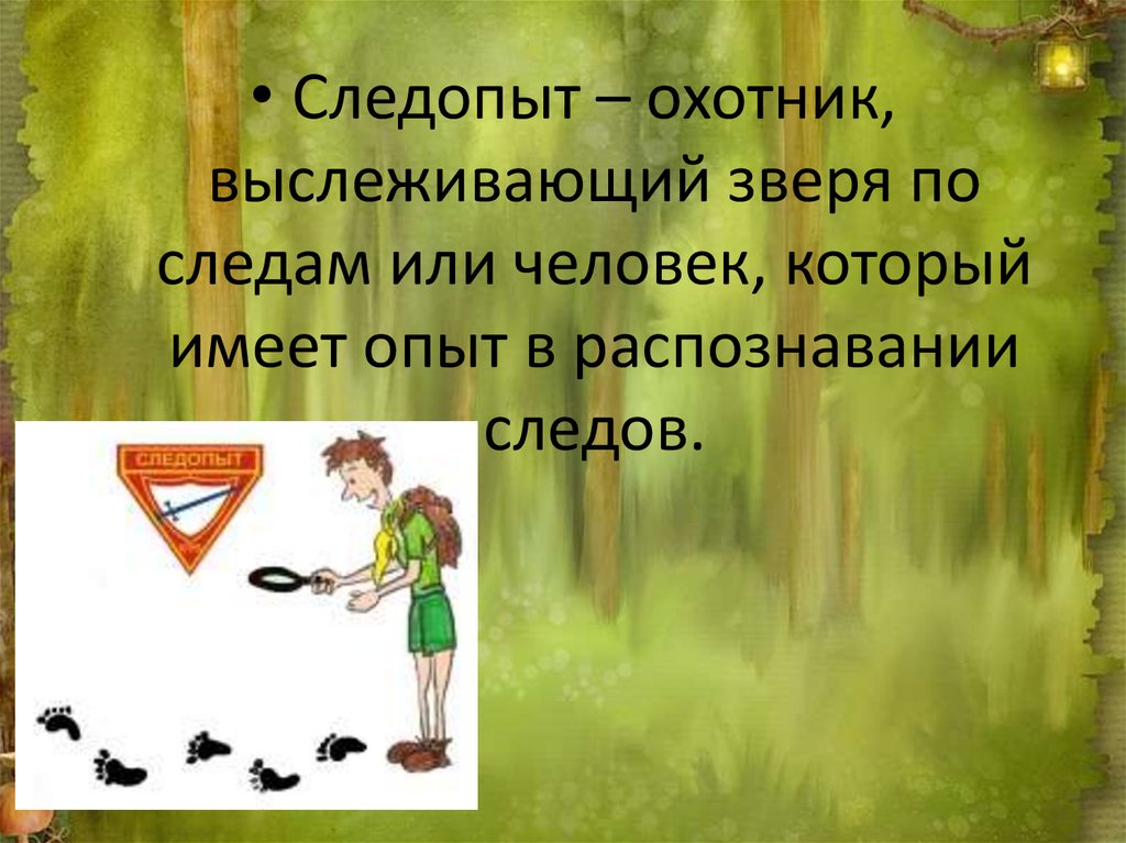 • Следопыт – охотник,выслеживающий зверя по