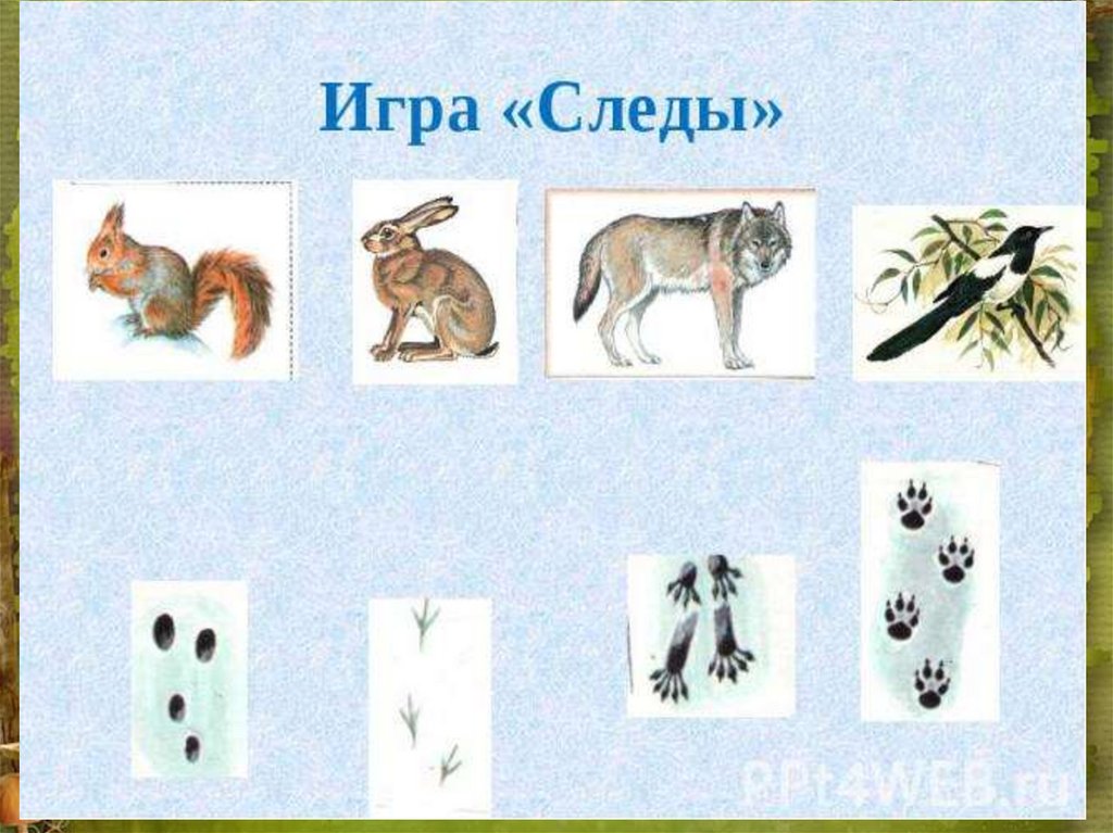 Следы - это отпечатки ноги илилапы, оставленные на какой – либо