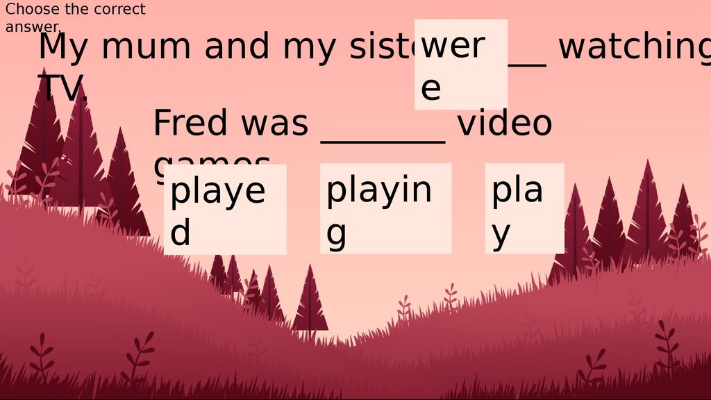 My mum and my sister _____ watching