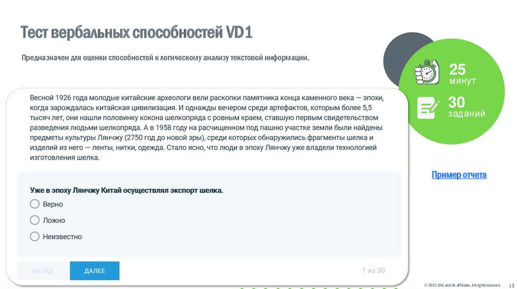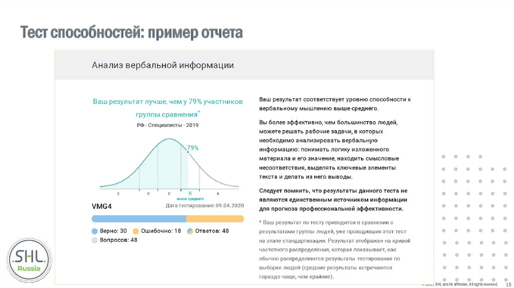 Тест способностей: пример отчета© 2021 SHL and its affiliates. All rights reserved.