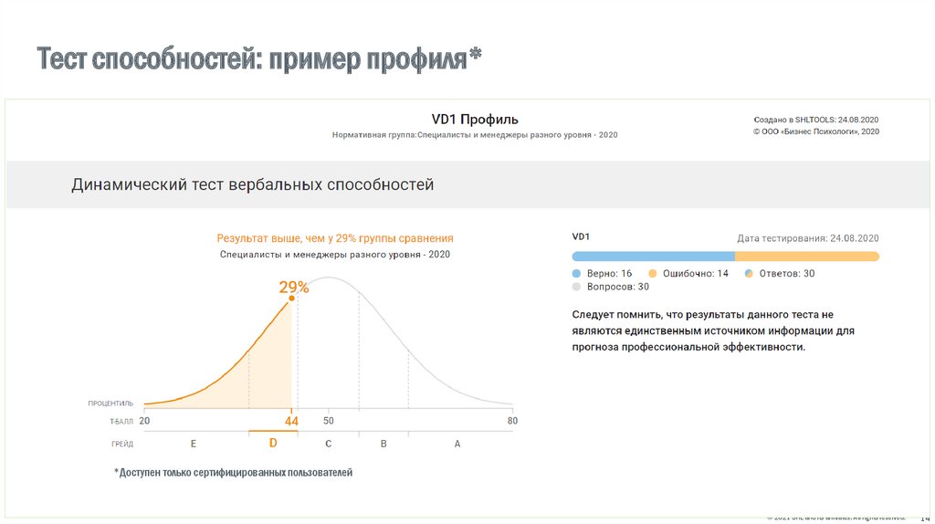 Тест способностей: пример профиля**Доступен только сертифицированных пользователей