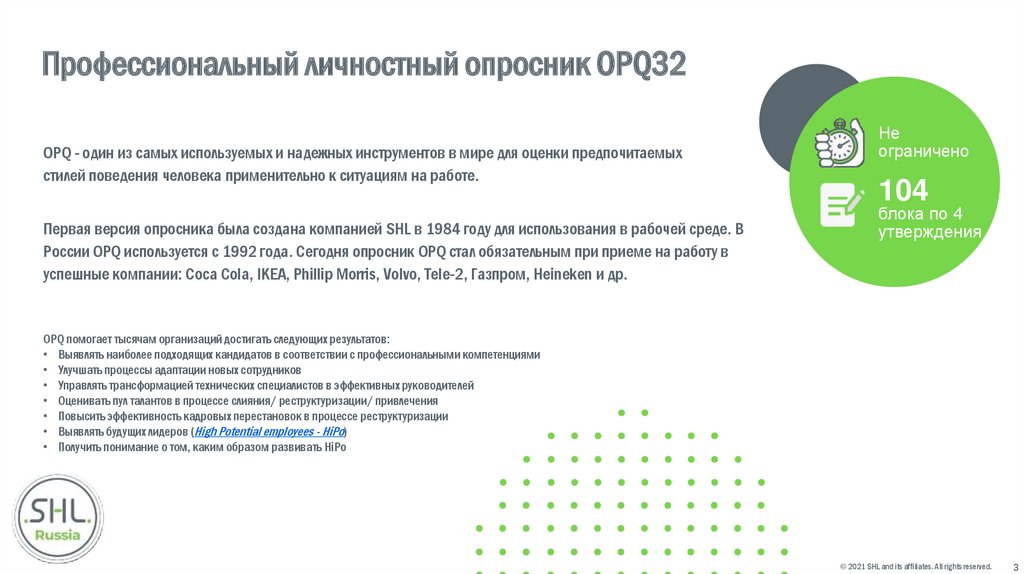 Профессиональный личностный опросник OPQ32OPQ - один из самых используемых и надежных инструментов в мире для оценки предпочитаемых