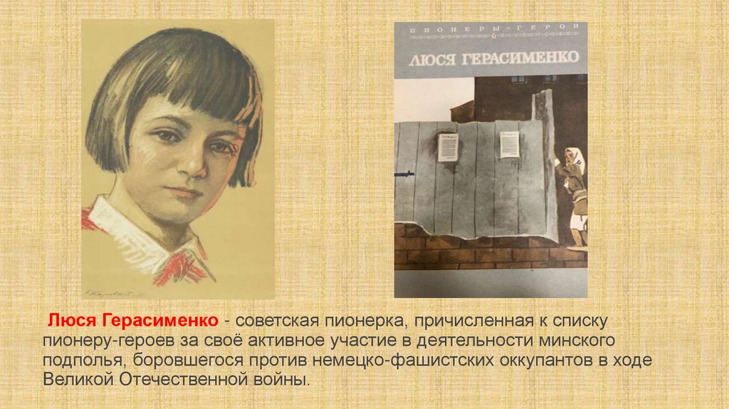 Люся Герасименко - советская пионерка, причисленная к спискупионеру-героев за своё активное участие в деятельности минского