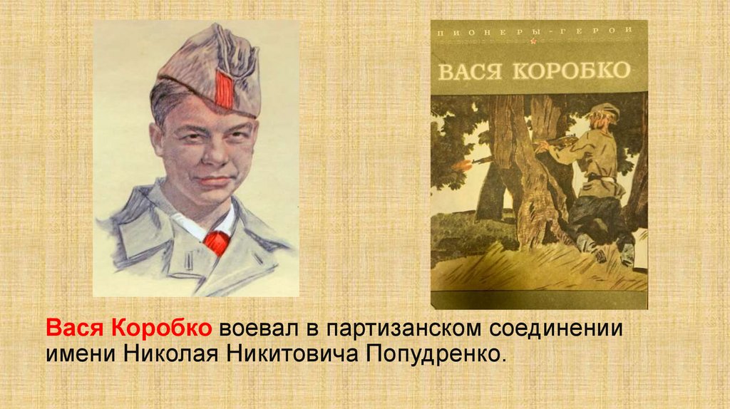 Вася Коробко воевал в партизанском соединенииимени Николая Никитовича Попудренко.
