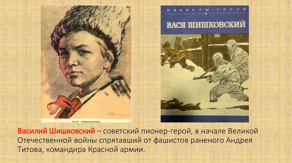 Василий Шишковский – советский пионер-герой, в начале ВеликойОтечественной войны спрятавший от фашистов раненого Андрея