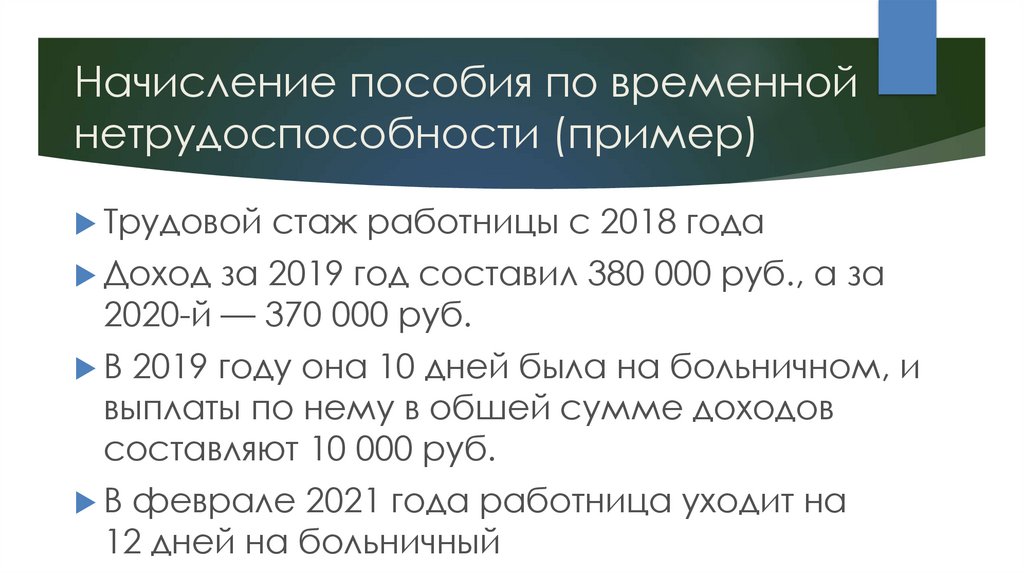 Расчет пособия по временнойнетрудоспособности