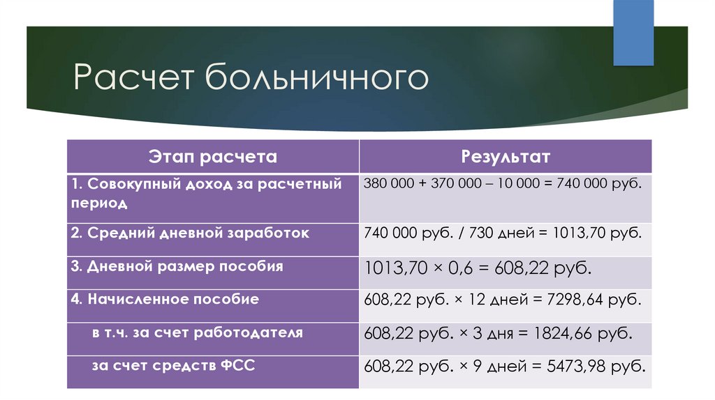 Расчет больничногоЭтап расчета