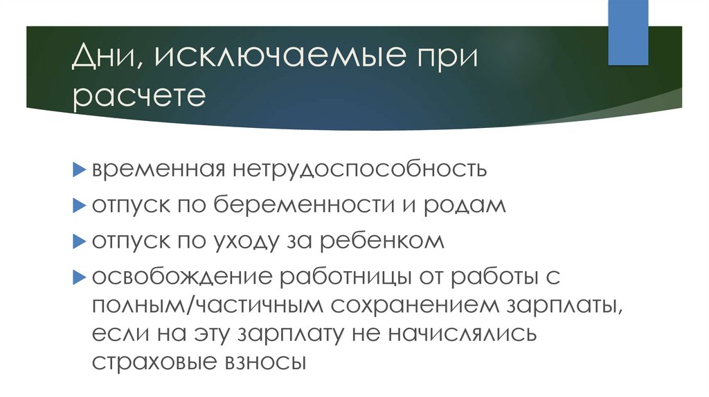 Дни, исключаемые прирасчете