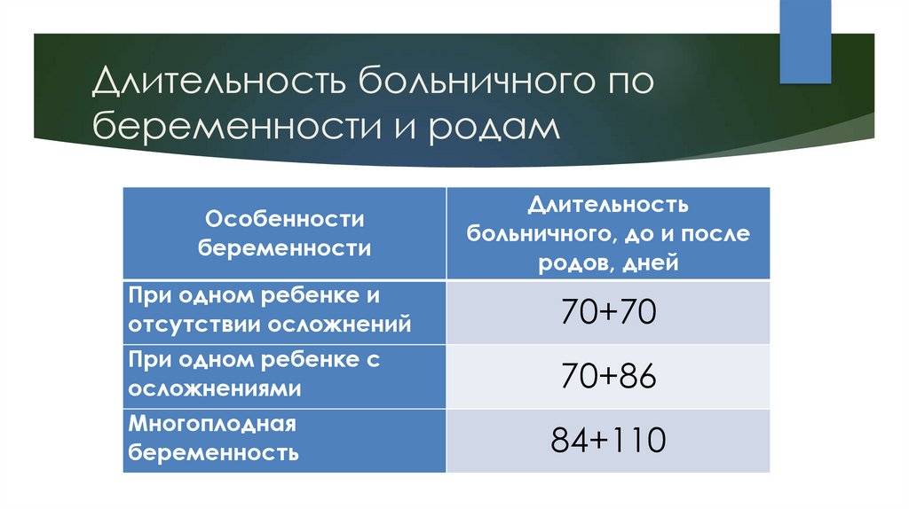 Длительность больничного побеременности и родам