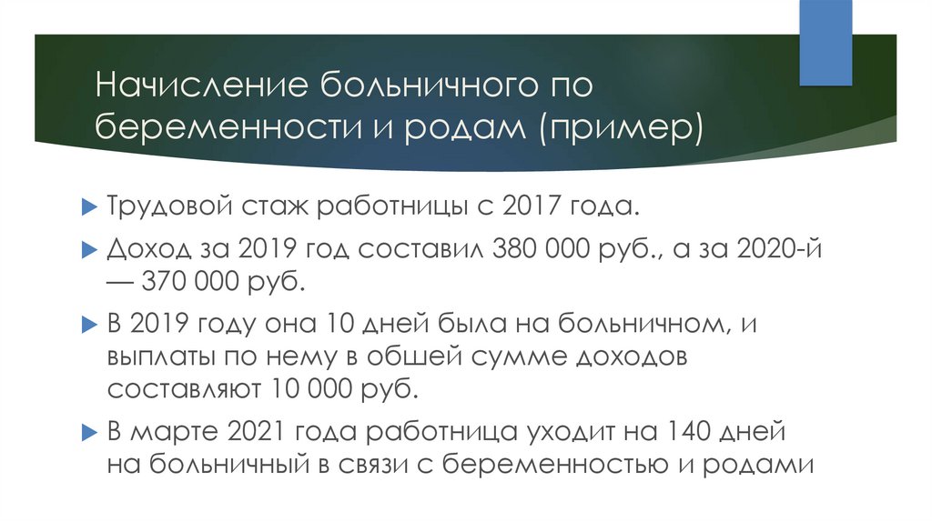 Начисление больничного побеременности и родам (пример)