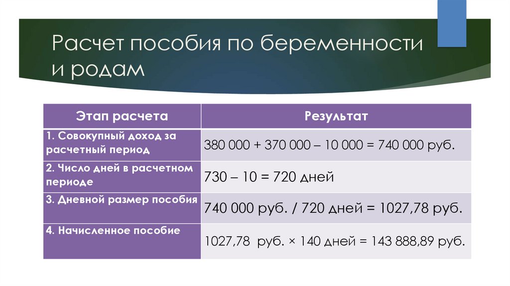 Расчет пособия по беременностии родам