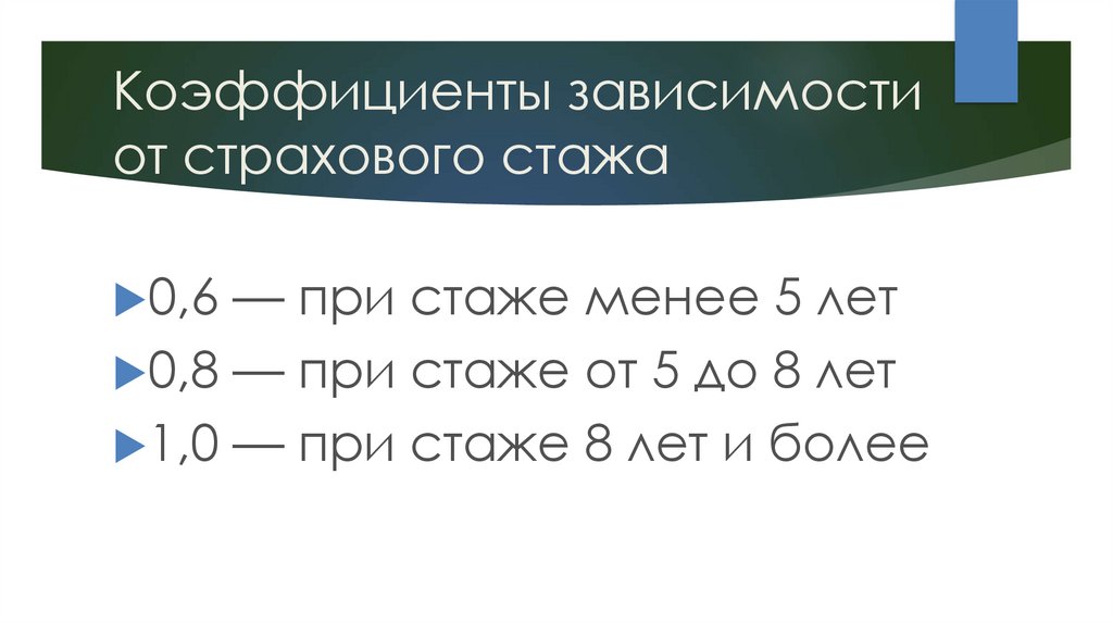 Коэффициенты зависимостиот страхового стажа