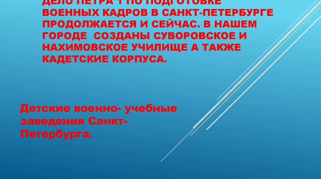 ДЕЛО ПЕТРА 1 ПО ПОДГОТОВКЕВОЕННЫХ КАДРОВ В САНКТ-ПЕТЕРБУРГЕ