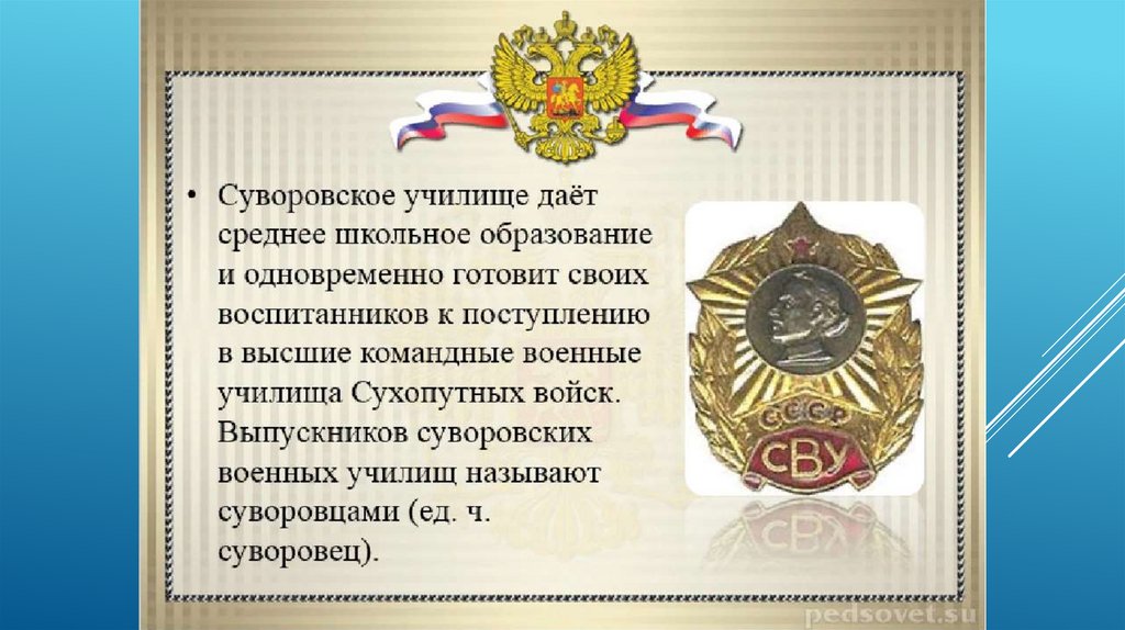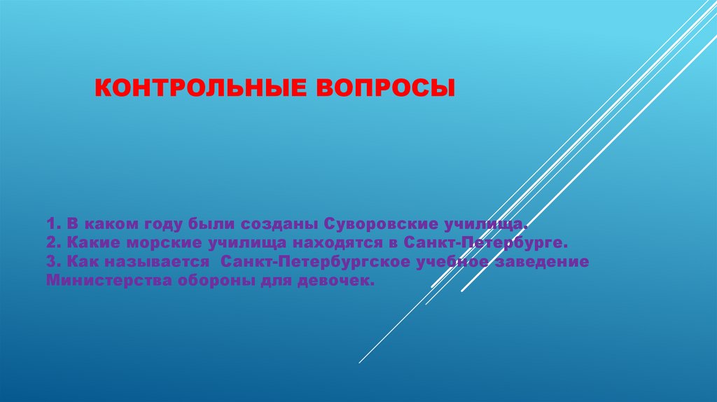 КОНТРОЛЬНЫЕ ВОПРОСЫ1. В каком году были созданы Суворовские училища.