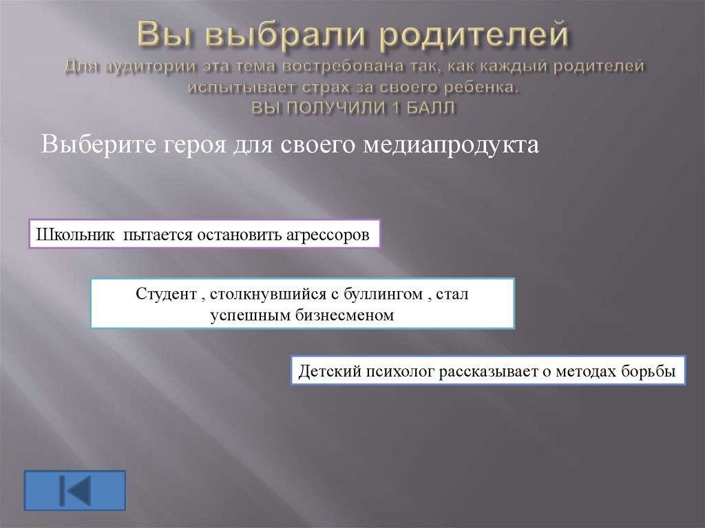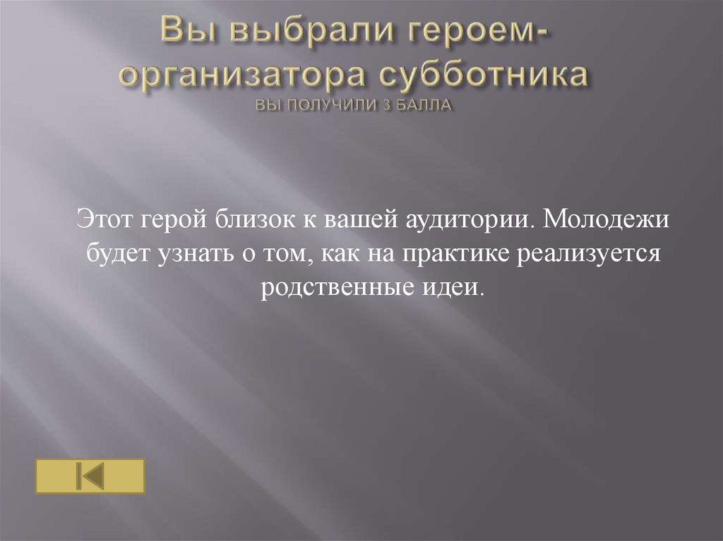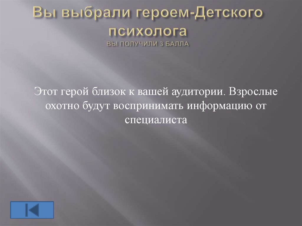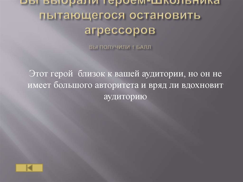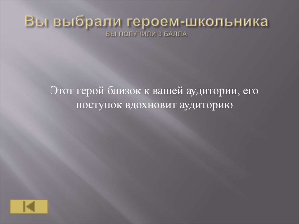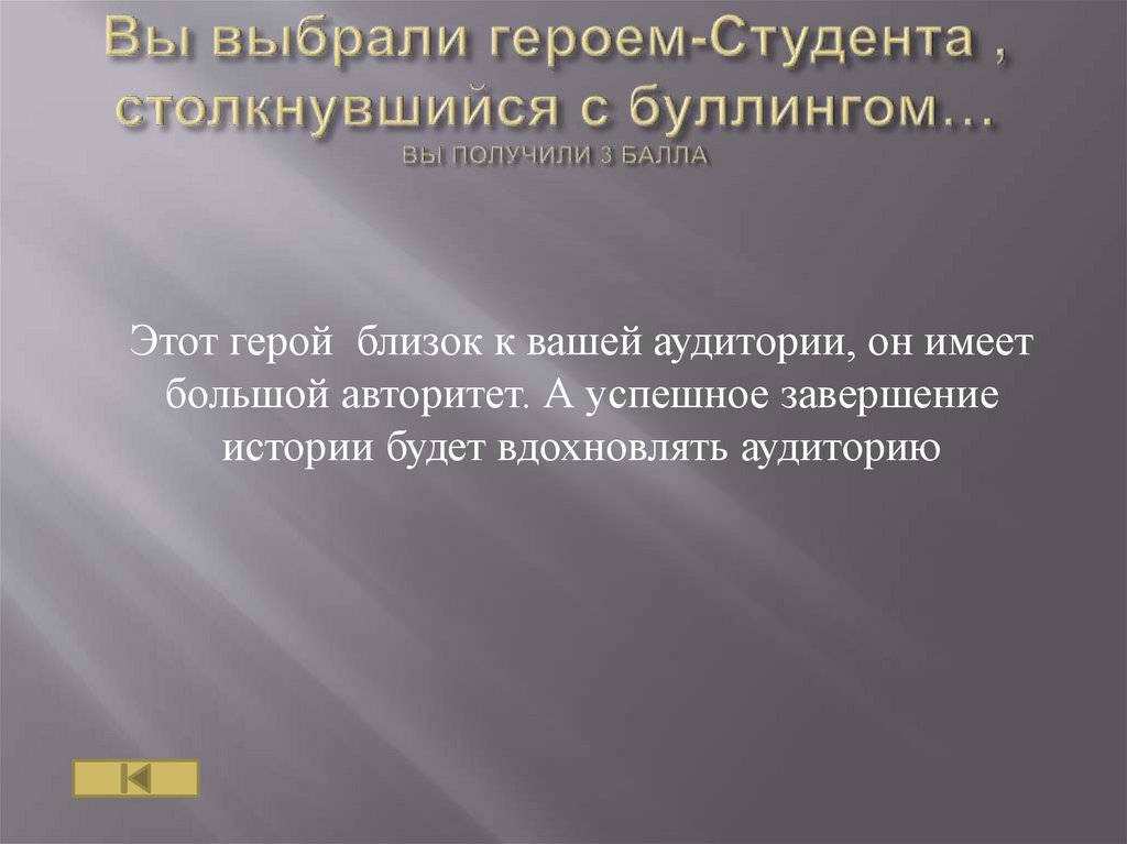 Этот герой близок к вашей аудитории, он имеетбольшой авторитет. А успешное завершение